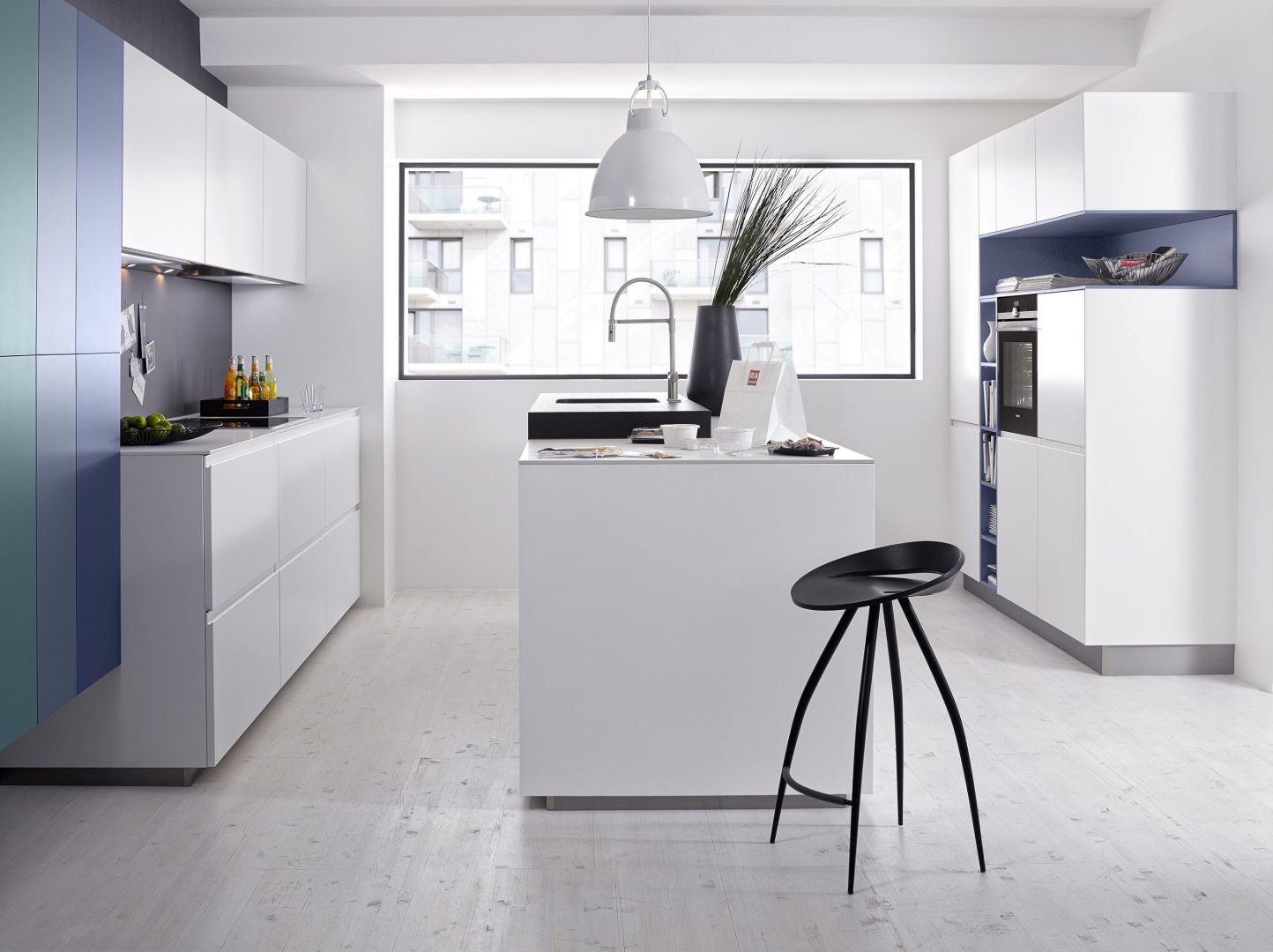 Creează un aspect omogen și armonios în bucătăria ta Nolte. Combină spațiile de depozitare cu rafturi deschise și sistemele de placare pentru perete cu fronturile Sigma Lack Weiss softmatt și Soft Lack Weiss softmatt pentru a obţine aspectul pe care îl doreşti şi spaţiile de depozitare de care ai nevoie.